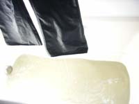 約一時間ちょっと浸かって頂きました。ご覧の様に水には汚れや糊が染み出しています!この様に糊落としをする事で大事なヴィンテージジーンズのインディゴが無駄に落ちてしう事を防ぐことが出来ます!水が青く濁っていないでしょう?なぜか黄色くなりました(笑)