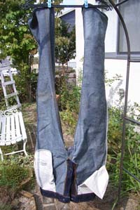 ご開帳です!(フロント側)リジットならではのバリバリとした厚紙のような肌触りとインディゴ?カビ?の独特な香りです!あぁ〜良い匂いです(恍惚)