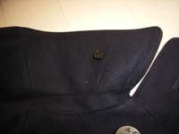 チンストラップを留めるため、右側の襟の裏側にも碇マークの小さなボタンが装着されている。