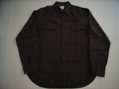 1930年代のLEVI'S LONG HORN GABARDINE SHIRTSです。ダークグレイと言うかブラックに近い色で、上手に画像が取れませんでした(苦笑) このタイプのロングホーンの中でちょっと、変り種なんですが・・・・お気づきでしょうか?フロントのバストステッチがありませんので レディースと言うことではありませんよねぇ〜!で・・・どこがちょっと違うのか、わかりましたか?